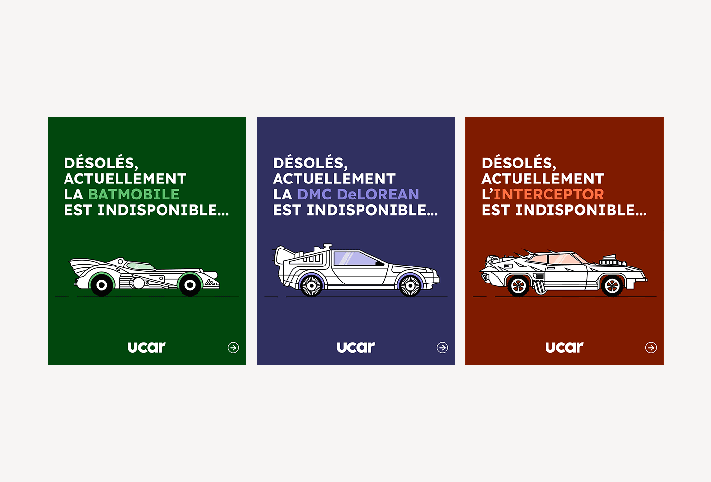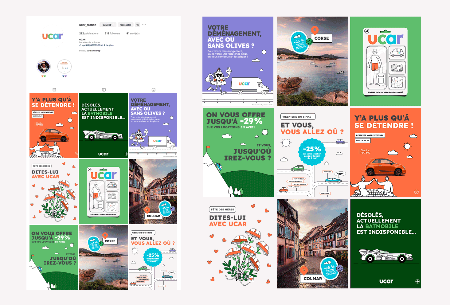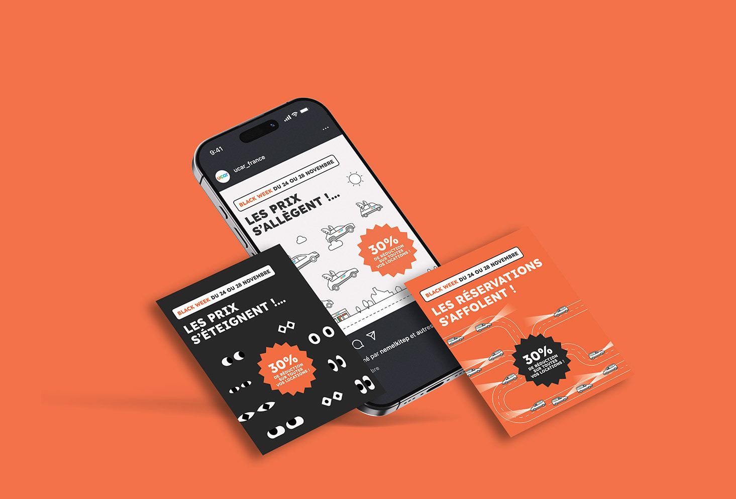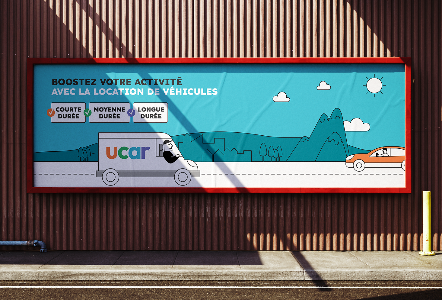 Direction artistique des différents supports de communication pour la marque de location de véhicules UCAR.